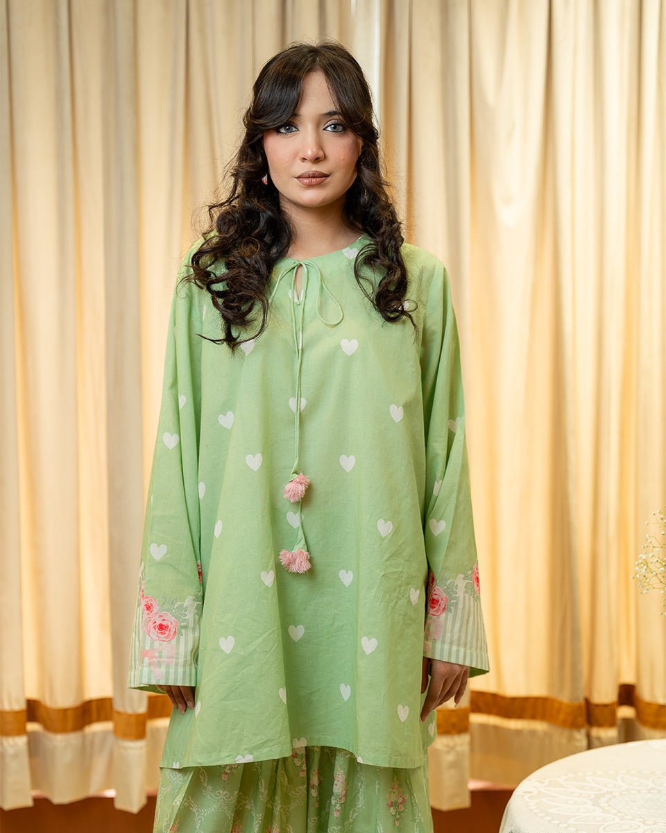 Crafted in soft cambric, this oversized silhouette is adorned with delicate handmade tassels — adding a touch of charm and movement to the look.