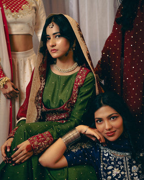 Mehfil Wedding 2025, born from the warmth of old celebrations, when homes glowed with laughter, cousins filled the house with chaos, and every corner hummed with love. Crafted in premium raw silk and soft organza, each outfit holds the touch of handwork dabka, naqshi, resham, sequins, French knots, poth and so much more, stitched with the same care that once went into heirloom trousseaus. A collection that feels like gathering everyone you love, all over again.