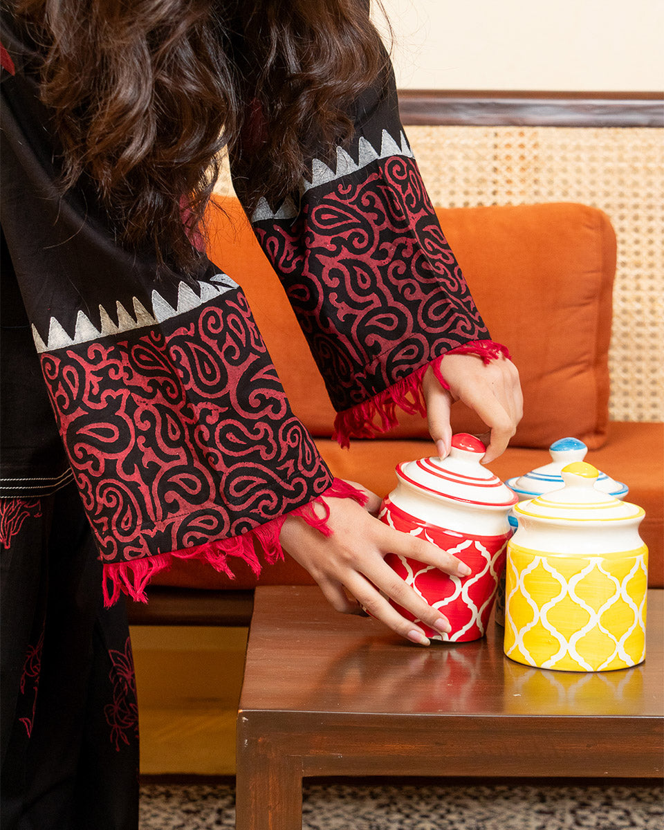 First wash dry clean only. Afterwards, gentle handwash at home. Do not soak in water. Avoid drying directly under sunlight.
